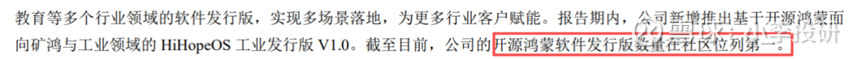 经过多年发展,公司在国产操作系统领域已有建树,首先是鸿蒙系统领域。