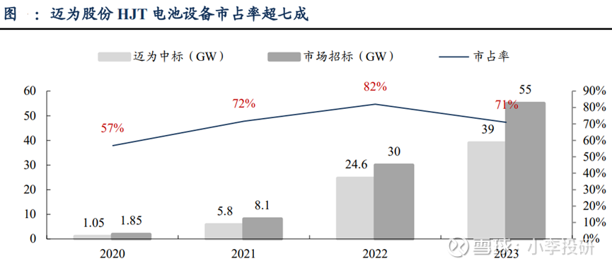 从行业地位看,公司是HJT整线设备龙头。比如2022年市场30GW 订单,公司中标24.6GW,市占率82%,2023年国内市场招标55GW,公司中39GW,市占率达71%。