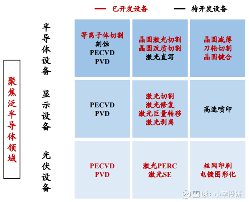 在半导体领域。公司聚焦于半导体泛切割与2.5D/3D先进封装领域,已推出晶圆激光开槽、激光改质切割、刀轮切割、研磨等核心设备。