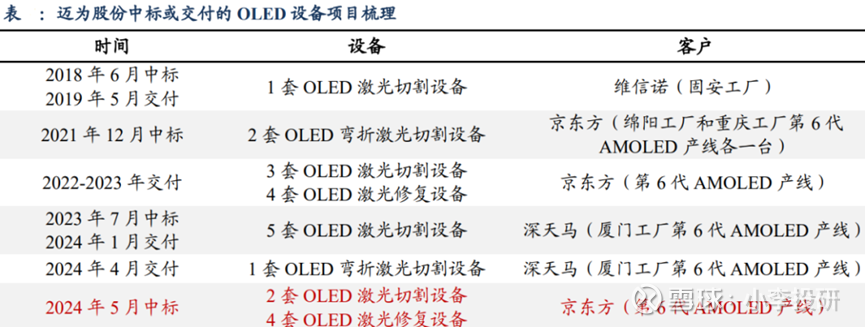 而公司自2017年起布局显示领域,在2020年便推出Mini/Micro LED全套设备,并在2024年中标京东方第6代AMOLED产线OLED激光切割&激光修复设备。