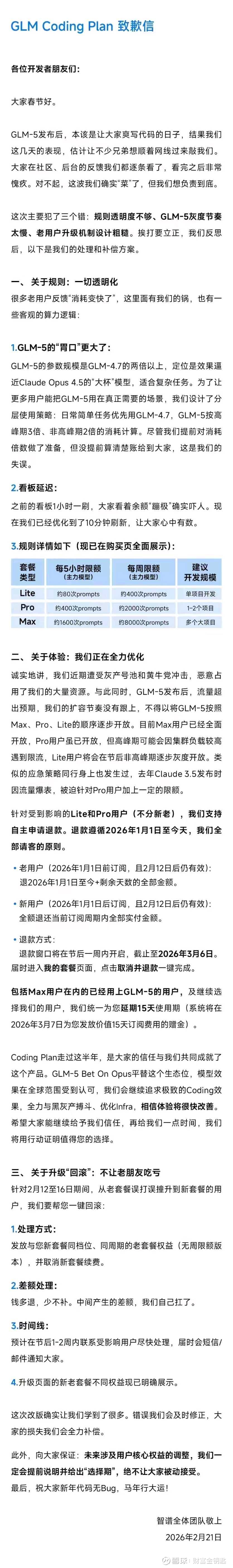 $网宿科技(SZ300017)$ $首都在线(SZ300846)$//@财富金钥匙:回复@财富金钥匙:“全球大模型第一股”智谱AI(02513.HK)紧急致歉的核心原因是其新一代旗舰模型GLM-5发布后,需求暴增远超公司承载能力,导致服务出现严重拥堵和用户体验问题。