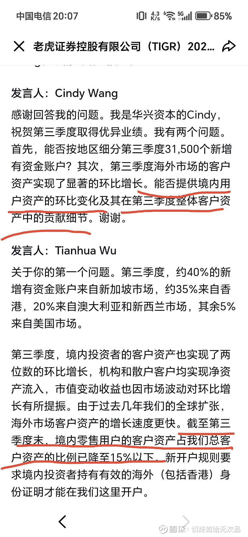 老虎内地用户资产比例已经下降到15%以下了。很多人还在担心这个风险,这个因素其实已经不是主要风险了。