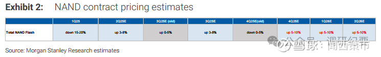 A: 我们观察到2025年第四季度NAND合约价正逼近双位数上涨,部分供应商已暂停报价,待2026年生产配比更清晰。我们预计2026年初混合价格将再涨15-20%。