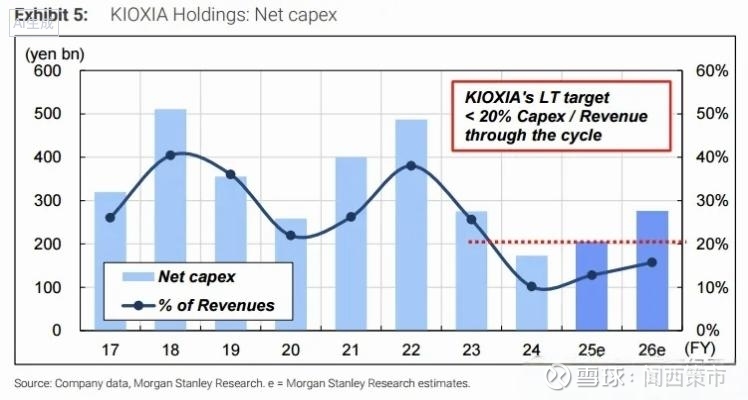 A: 2026财年我们预计总资本支出2800亿日元(同比增540亿),主要用于向BiCS-8工艺迁移;2027财年预计3000亿日元。净资本支出(扣除政府补贴及资产出售收入)将明显低于公司长期目标营收占比20%。