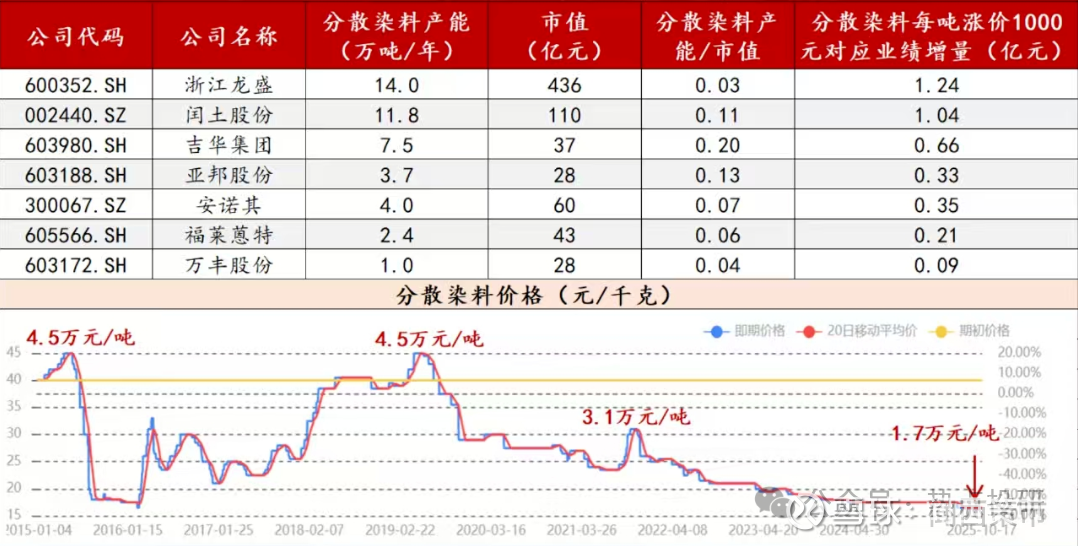 核心不在于还原物的价格弹性,而是通过还原物的价格来影响分散染料价格,龙头企业的诉求变化是最重要的关注点。