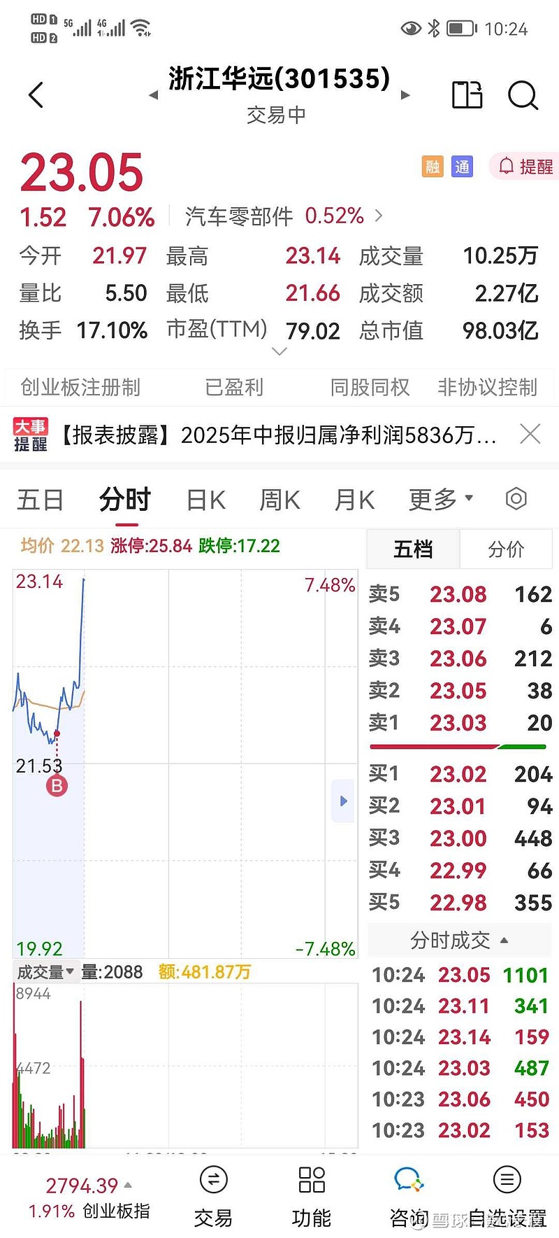 301535下探21.8时果断加仓