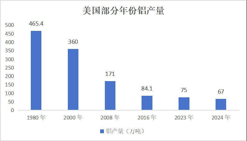 要知道,1980年,美国的铝产量还高达465.4万吨,位居全球第一。
