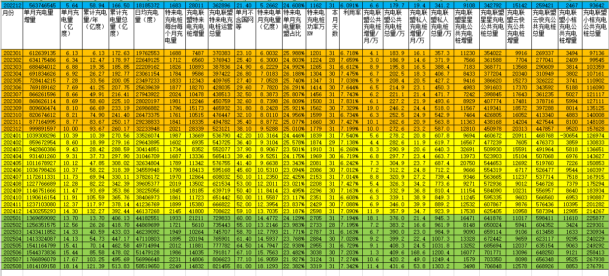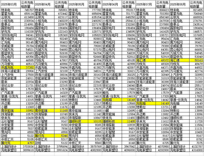 上图是充电联盟公共充电桩的详细列表,只是充电联盟会员公布的数据,并不代表整个充电桩市场,而且有几个运营商的数据也一直没有更新,只能做一个数据参考。有几个运营商排在最后,位置不够,就不写了。