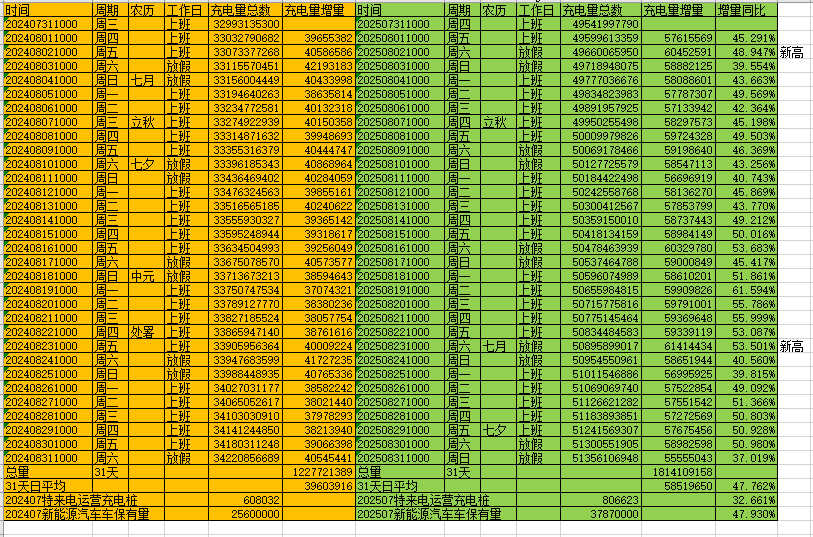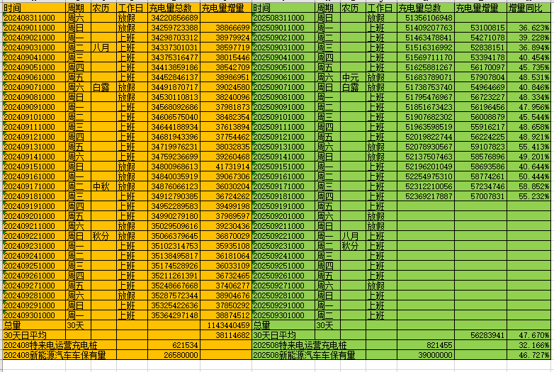 特来电充电量08月同比增长47.762%,预估09月同比增长48.000%。