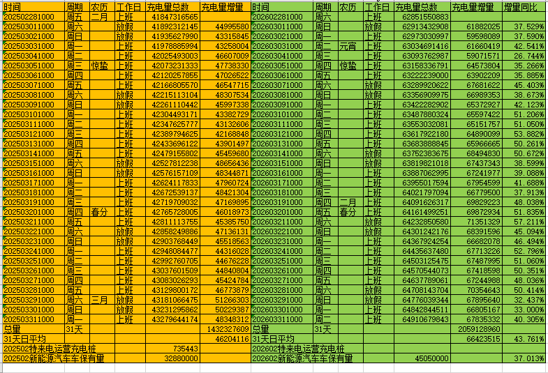 一季度三个月结束了,看看充电量的同比47.051%,还可以。最近几天新闻看到充电涨价了,也就看看,最终充电桩市场走向何方,还需要几年。最终肯定是光储充放都要有。