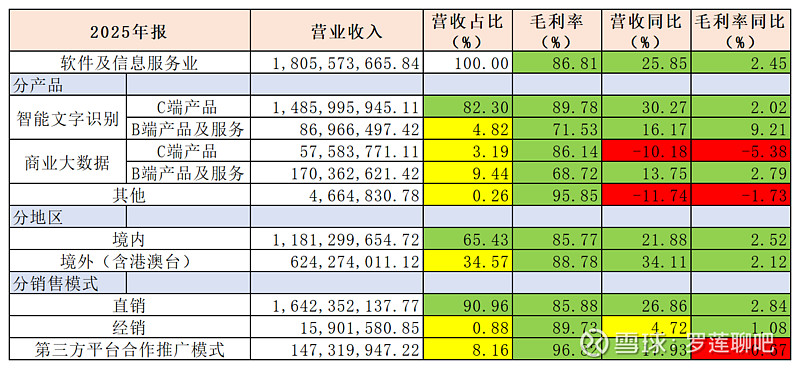 上图是罗莲根据合合信息在2025年报中披露的营收信息整理而得。
