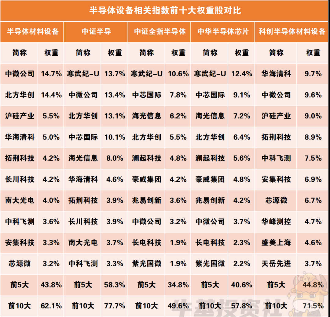 从权重分布与成份纯度两方面看,该指数前十大成份股特征显著:一是龙头设备公司占比突出,权重多接近15%的个股权重上限;二是再次印证成份纯粹,前十席位基本均被半导体材料与设备类企业包揽。