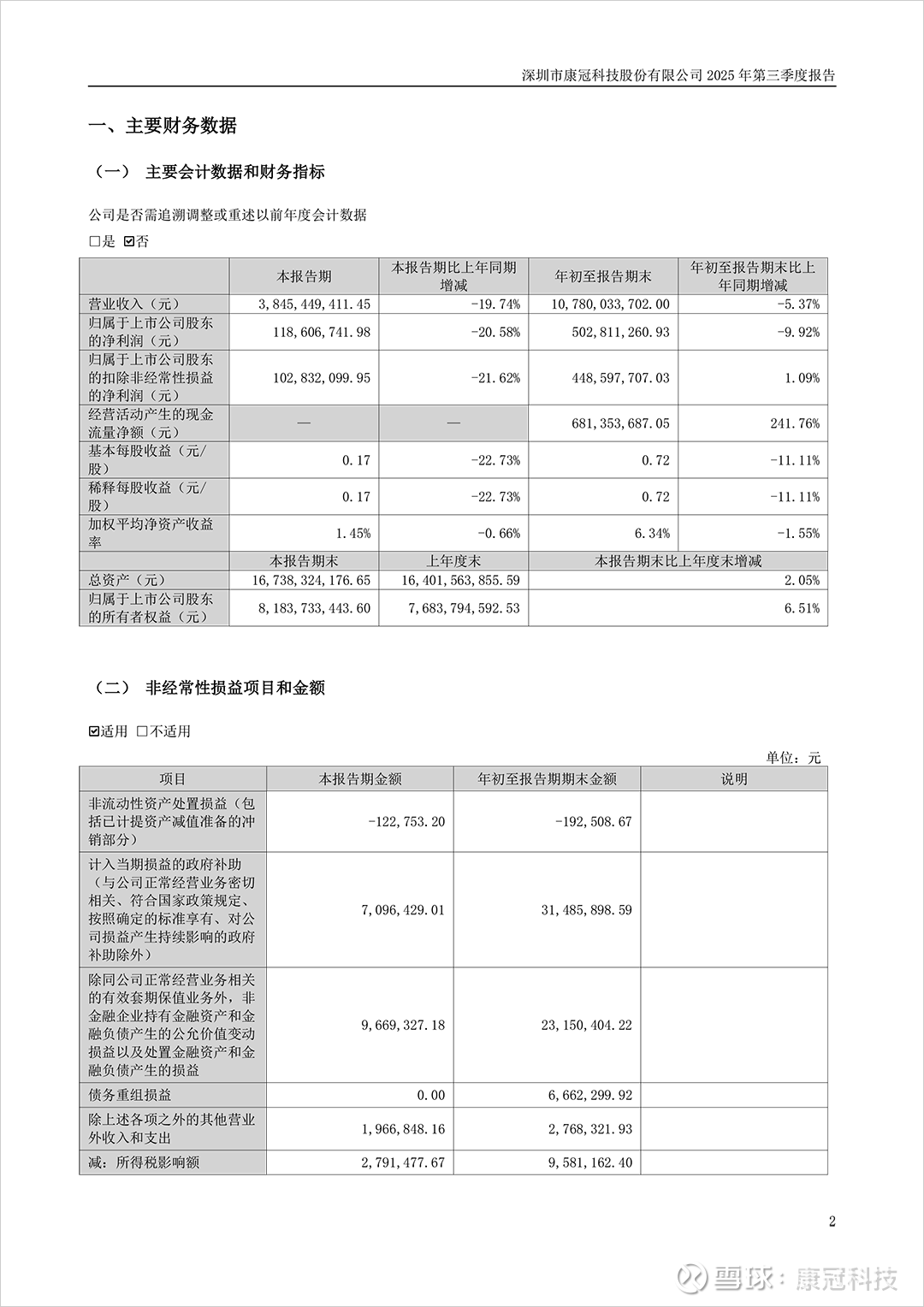 2025年10月28日晚,康冠科技(001308.SZ)发布了2025年三季度报告。报告显示,2025年第三季度,康冠科技实现营业收入38.45亿元,归母净利润1.19亿元,扣非归母净利润1.03亿元。