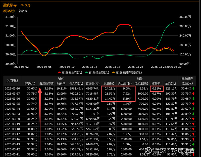 这几天被融券给砸的,沽空0.31% ,牛逼,融资还算是稳定,融券发光中