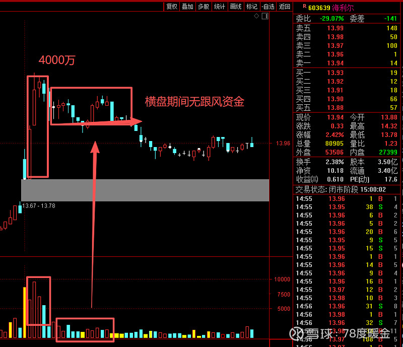 资金早盘用了大概4000万,拉起来7个点,奈何没有跟风资金,后面就自己下来了