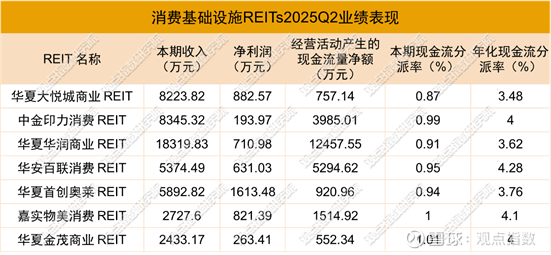 观点指数 在8月27日观点指数研究院发布的《发展考验未止 | 2025年8月商业地产零售业态发展报告》中,观点指数发现,商业市场层面,多个核心城市的供应节奏呈现差异化,部分城市的短期租赁需求释放存在一定压力。已上市消费REITs运营稳健之下,业绩持续分化,但现金流分派率差异不大。