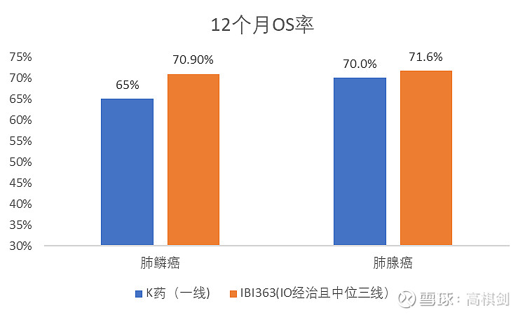 这是什么概念?首先在用药上,K药是联合化疗,而IBI363是单药;其次,K药是初治的一线患者,而IBI363本次入组的是已经用过PD1等免疫治疗,而且是前面中位经过了两线治疗!也就是IBI363在后线单药的疗效已经可以媲美K药在一线联合化疗的疗效。结论:IBI363完全具备往一线推的潜力,OS胜算很大