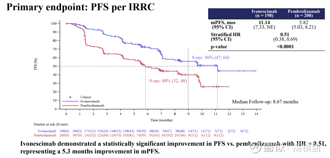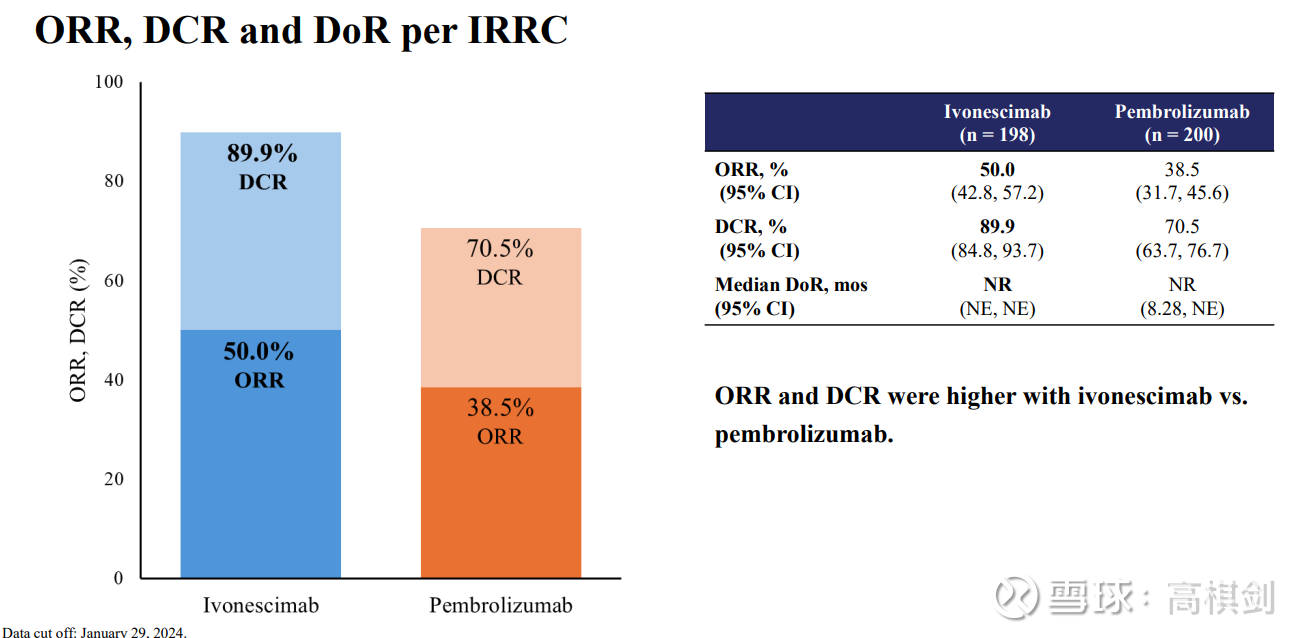 4.1 IBI363在中位三线IO经治的ORR显著高于K药在一线的数值