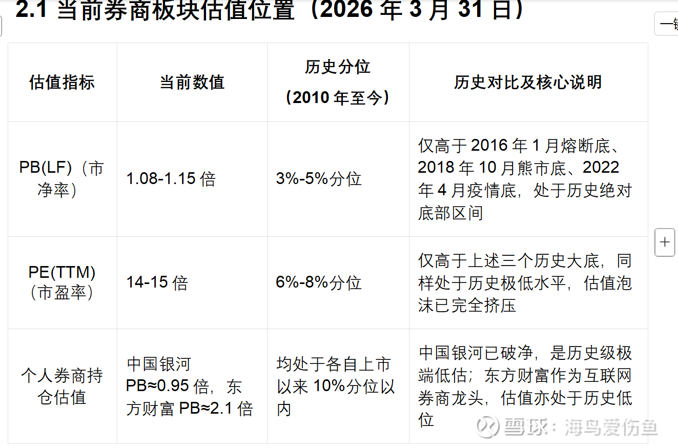 • 结合账户持仓:个人持仓的中国银河(PB≈0.95倍)已破净,再跌空间不超过10%;东方财富(PB≈2.1倍)再跌30%将跌至PB1.47倍,是历史上仅2018年、2022年才出现的极端低位,下跌概率极低。