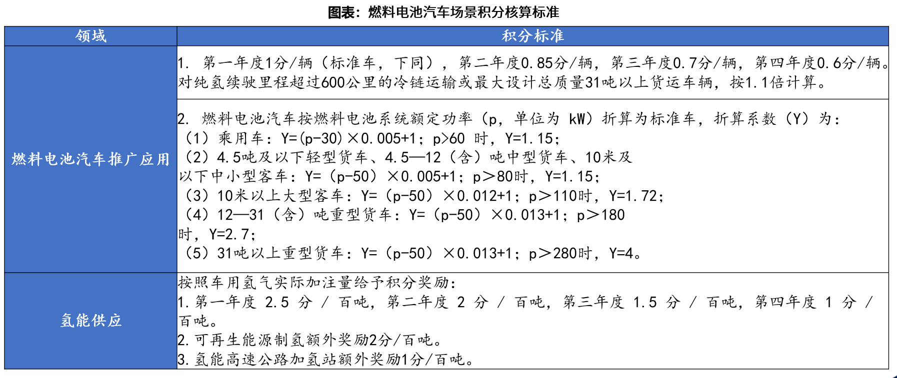 #试点规模明确:资金杠杆撬动确定性需求。通知确定第一批5个城市群开展试点,单个城市群4年试点期内奖励上限16亿元,合计中央财政奖励资金上限达80亿元。参考此前燃料电池汽车示范政策,地方配套资金大概率按1:1跟进,有望撬动160亿元资金定向支持氢能综合应用,为产业注入确定性增量。