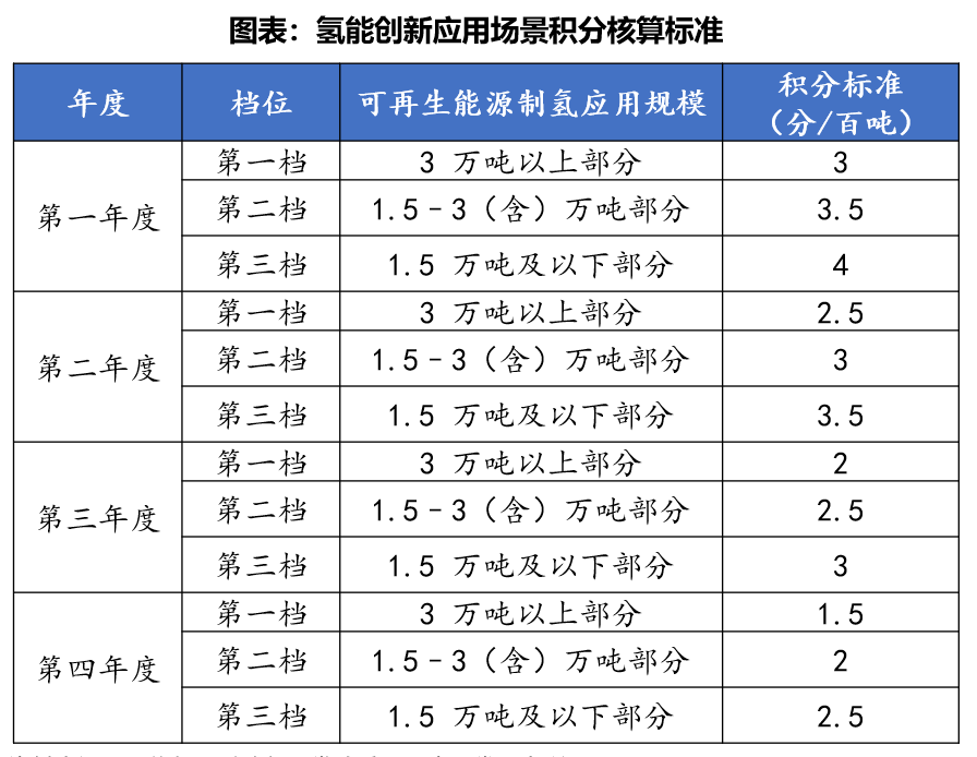 #补贴强度量化:测算对应3-4元/kg氢补贴。根据附件中的资金支持标准,奖励将基于各场景终端产品或用氢规模核算的“积分”进行(1积分奖励8万元)。结合各场景单位产品的用氢量折算,测算对应到绿氢的补贴强度约为3-4元/kg。#其意义在于通过“真金白银”确立了绿氢在多元场景下的经济性补偿机制,且与地方政策、碳税形成合力后,将有效加速绿氢平价的到来。