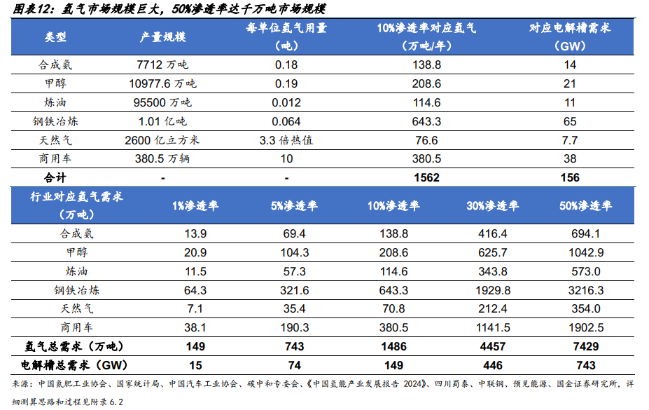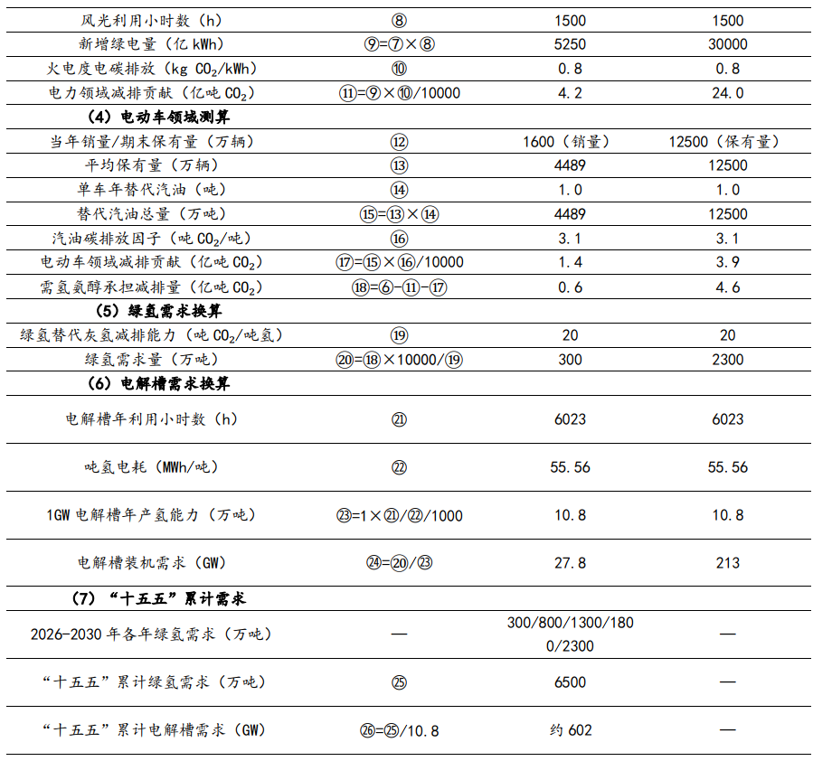 #电解槽:卖铲人角色最受益,设备放量在即。 绿氢需求爆发直接带动制氢设备招标放量,降碳目标下,“十五五”累计6500万吨绿氢对应602GW电解槽需求。具备项目经验和技术优势的设备企业将脱颖而出。