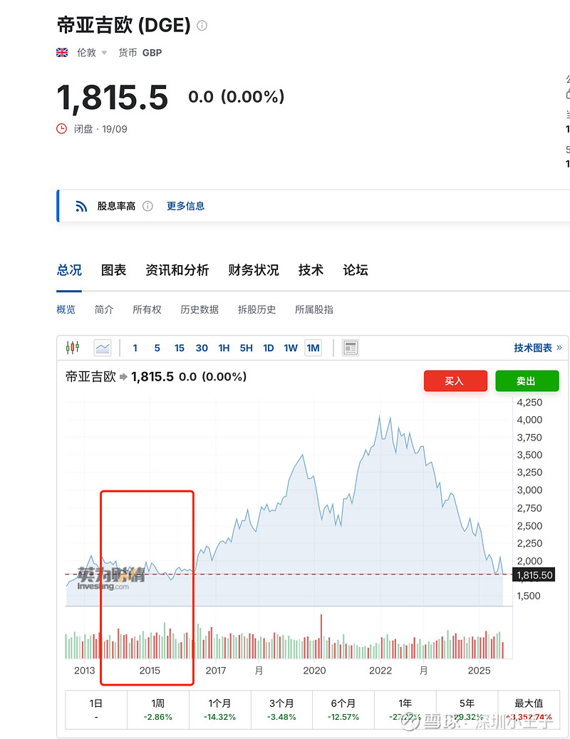股价跌回10年的帝亚吉欧目前的估值情况:股息率5.7%,静态市盈率11倍,作为一家全球运营,60%毛利率,历史悠久的消费品公司似乎很具投资价值。