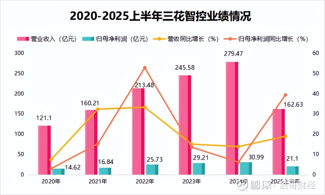 财报数据显示,2020到2024年三花智控营收一路高歌猛进,从121.1亿增长至279.47亿,净利润更是从14.62亿飙升到40亿。2025上半年,公司实现净利润21.1亿,同比猛增39.31%。