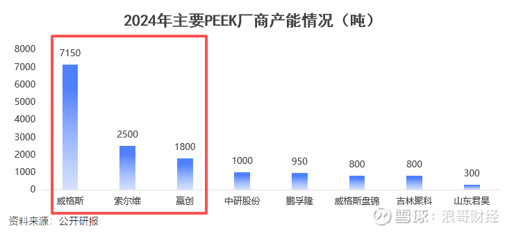 再加上,PEEK材料研发成功后的近50年中,全球范围内也仅有威格斯、索尔维、赢创和中研股份这4家企业,产能达到千吨级。