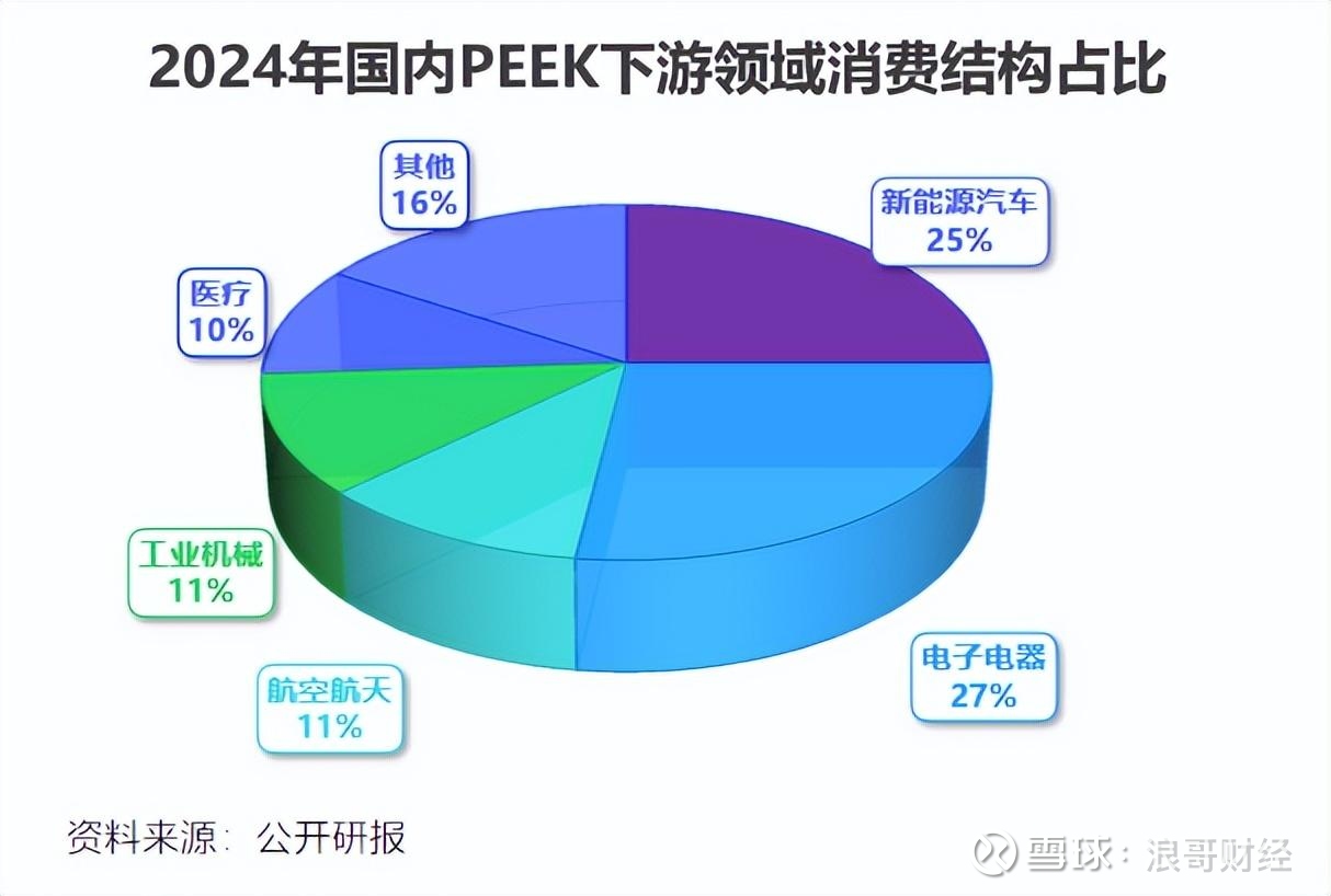 2024年国内PEEK应用领域消费构成中,新能源汽车占比高达25%,市场规模仍不足10亿元。那医疗与航空航天领域实际需求,可能会更小一些。