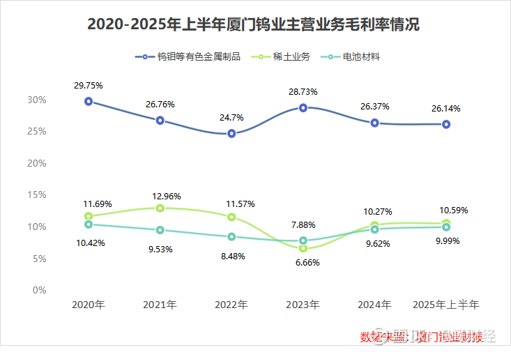 凭借较高的技术附加值,厦门钨业钨钼等有色金属制品毛利率常年保持在24%以上,盈利能力强劲。