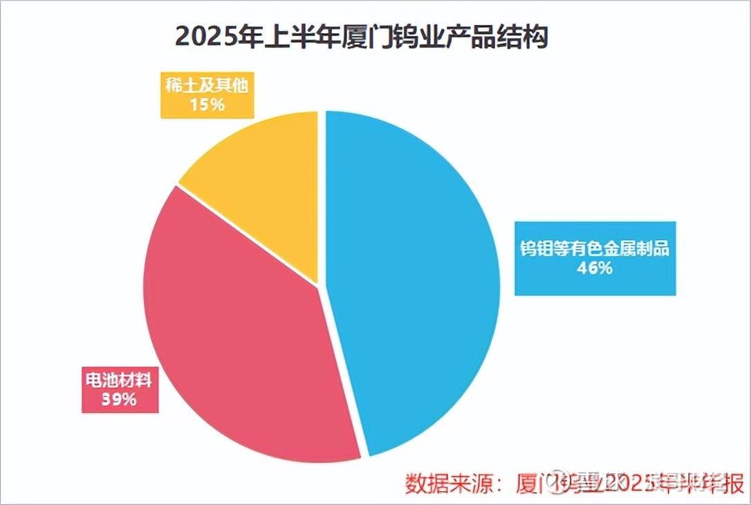 2025年上半年,公司钨钼等有色金属制品实现营收88.63亿元,营收占比超四成,是当之无愧的营收支柱。