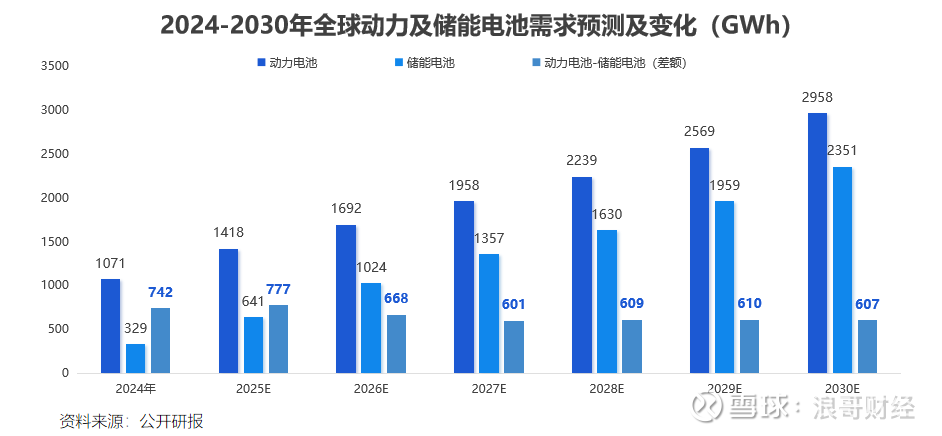 就2月份数据看,国内储能新增装机总规模为10.06GWh,同比大增242%。将时间拉到更长维度来看,2024年动力电池与储能电池实际需求差额为742GWh,2027年后,该数额稳定在600GWh上下。