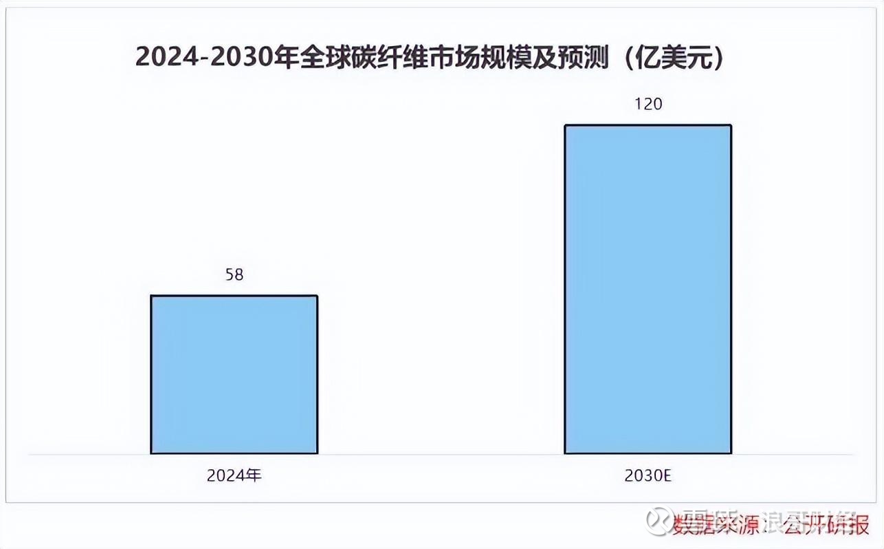预计2024到2030年,全球碳纤维市场规模将从58亿美元增长至120亿美元,有望实现翻倍增长!