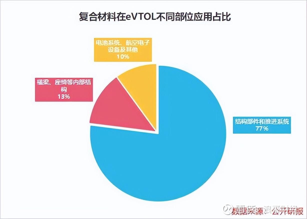 eVTOL作为低空经济的核心载体,其整体应用的复合材料中,有77%用于机体结构部件和推进系统,且超九成都是碳纤维复合材料。