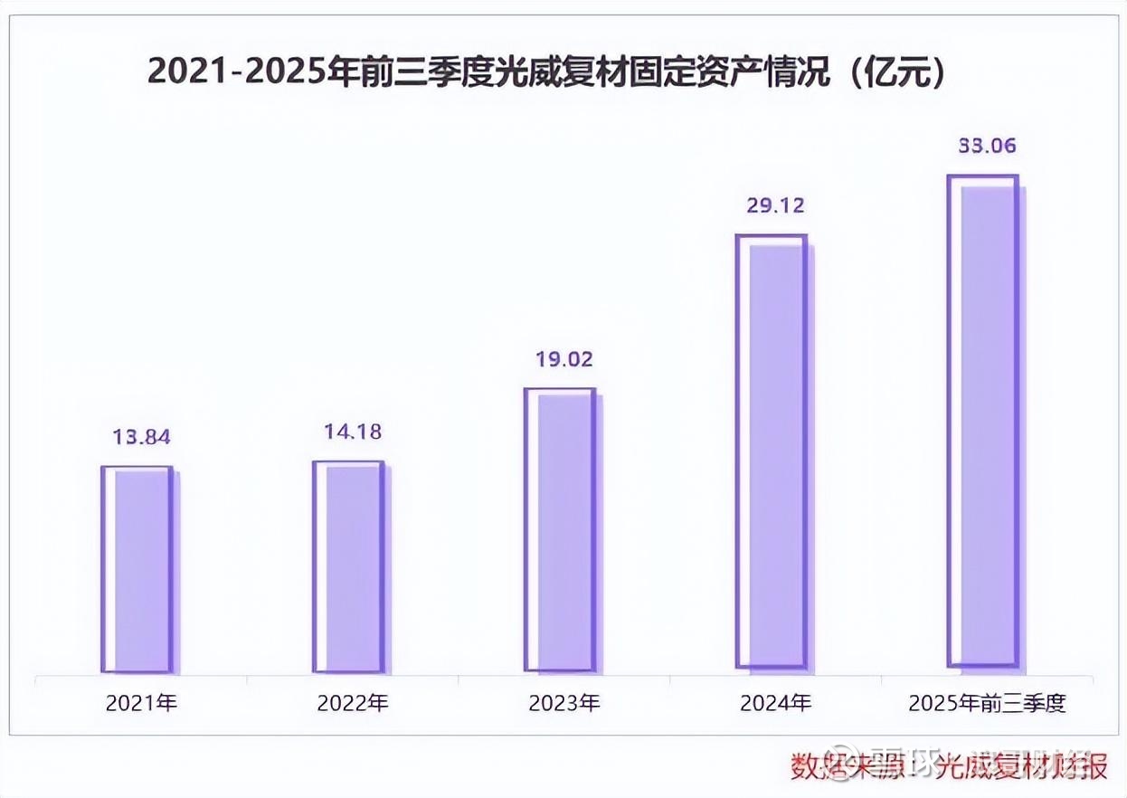 2021年到2025年前三季度,光威复材固定资产从13.84亿元攀升至33.06亿元。2025年,公司碳纤维总产能已达2万吨,预计2026年还将新增1.4万吨产能,产能规模持续扩容。