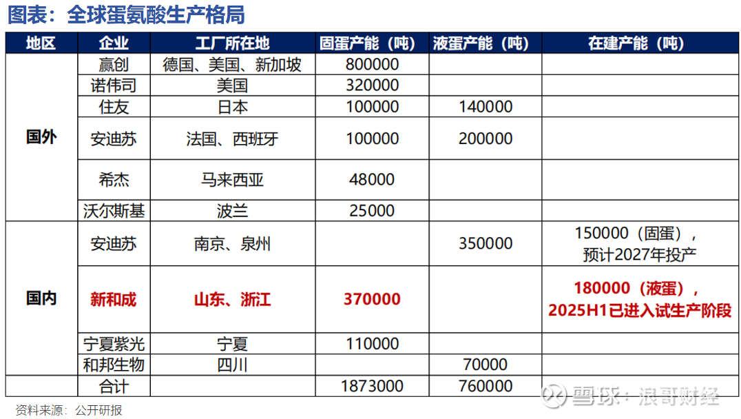 与维生素相比,该产品市场竞争格局更为集中。2025上半年,赢创、安迪苏、新和成三大企业全球产能占比,就达到惊人的74%。国内仅新和成、和邦生物等少数公司,具备量产能力。