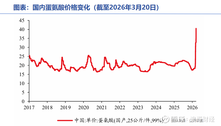 3月20日,蛋氨酸均价在39.5元/公斤,较上月上涨超111%;甲醇均价在2432元/吨,与上月相比,价格增长近28%。