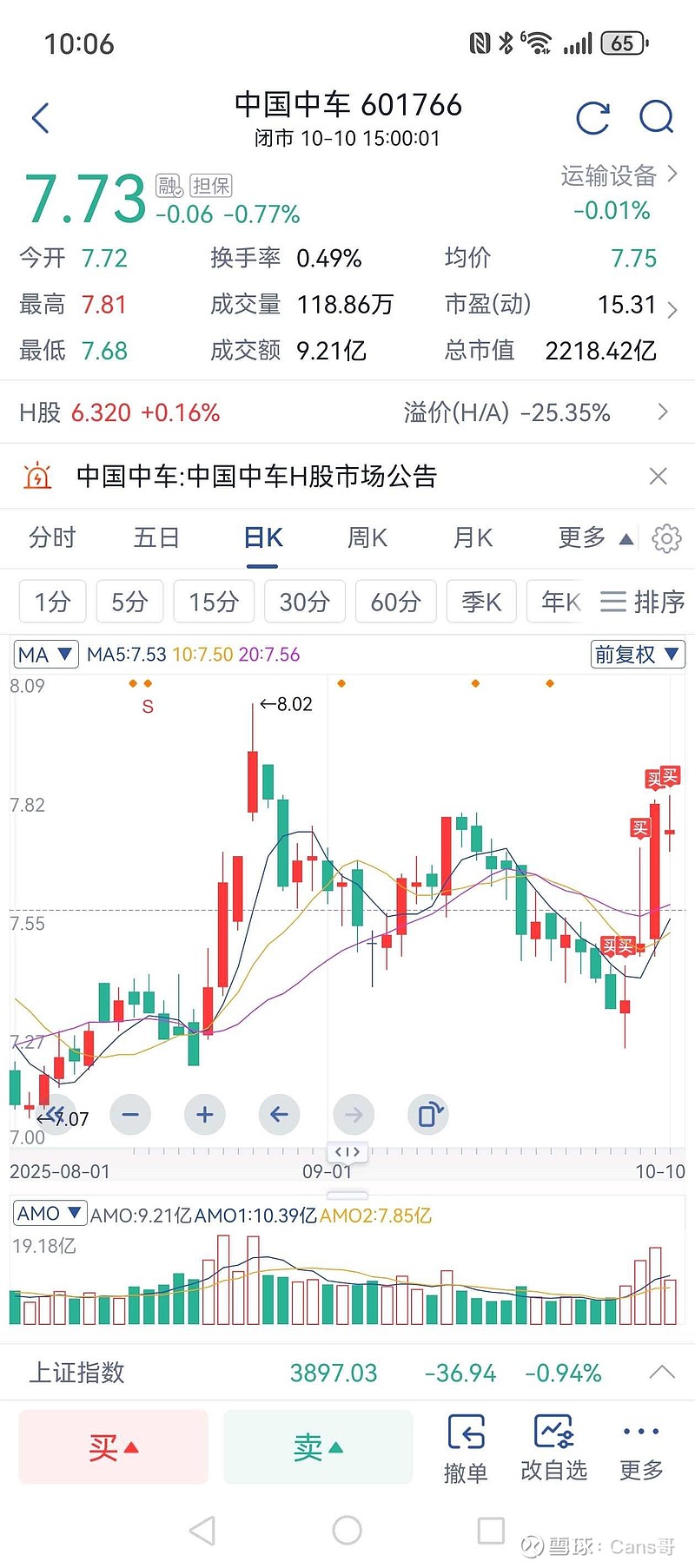 面对10.13开盘,$中国中车(SH601766)$ 怎么选择?