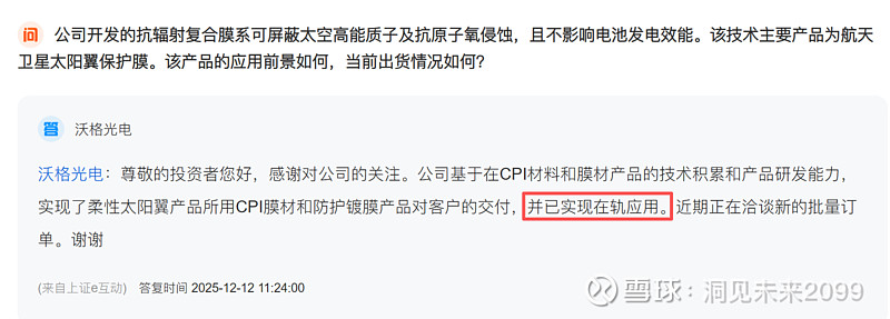 还有很多人不知道沃格光电的CPI膜已经提前卡位了这个赛道,并且已经上天在轨应用了。