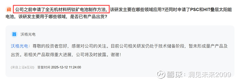 已经在研发技术储备,瞄准未来钙钛矿的太阳能电池的市场