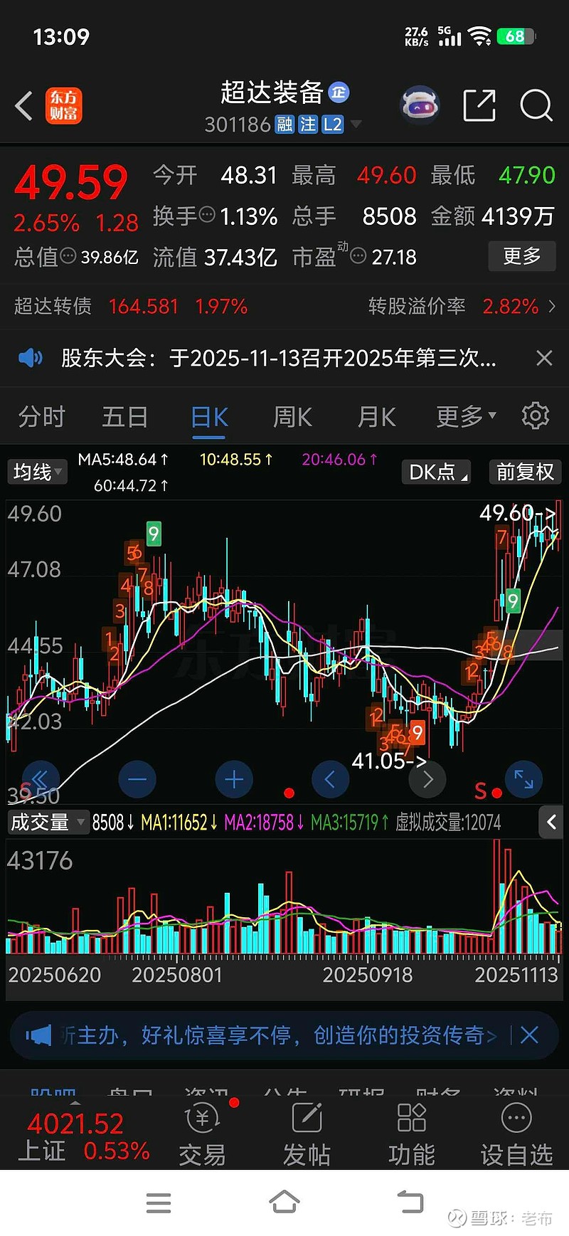$超达装备(SZ301186)$