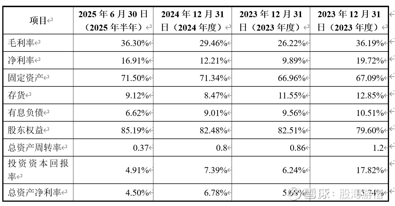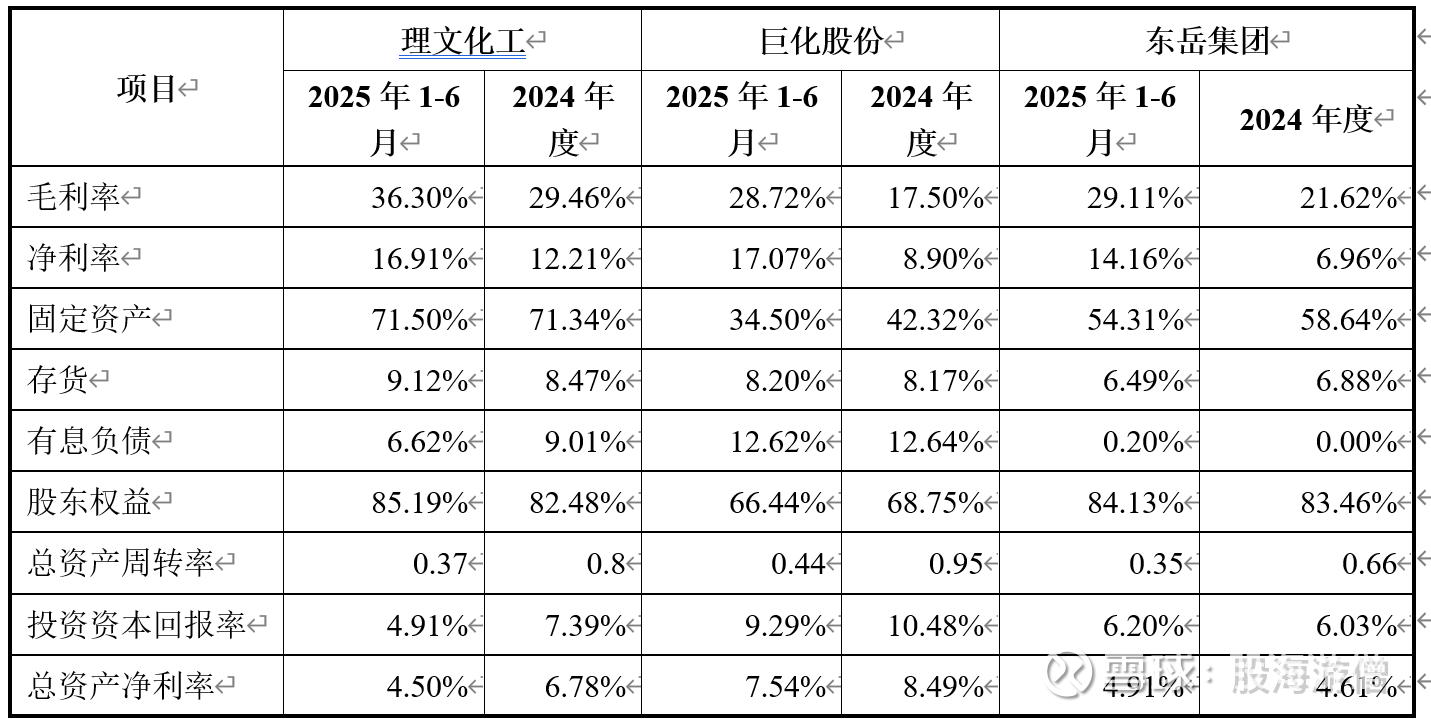 选取行业有代表性的两家公司进行对比,其中$巨化股份(SH600160)$ 为国资控股,在行业内规模最大,$东岳集团(00189)$ 为民营控股企业,公司投资资本回报率显著低于巨化股份,虽然公司毛利率2024年高于巨化股份,但净利率差异不大,2025年上半年公司净利率反而低于巨化股份,主要是公司销售及管理费用2025年上半年合计为16.20%,2024年为15.53%,而同期的巨化股份2025年半年度销售管理费用合计为3.89%、2024年为4.07%。同时,公司负债较低,有息杠杆和无息杠杆比率较低,导致公司投资资本回报率低于巨化股份,与巨化股份相比公司销售管理费用较高主要是公司产品结构、销售规模及客户结构所造成的。公司投资资本回报率与东岳集团相仿,公司毛利率也显著高于东岳集团,但净利率差距较小,东岳集团的销售管理费费用2025年半年度及2024年度分别为7.8%、8.07%。公司资产周转率略高于东岳集团,公司固定资产占比显著高于同行业上市,导致公司投资资本回报率较低。与同行业公司相比,公司效益(净利率)能达到行业平均水平,但效率(周转率)明显较低,公司后续需提升固定资产周转率和使用效率,主要是提高产能和营业收入。