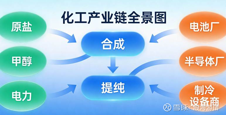 上游原料:毛利率<10%;中游基础化工:15–25%,周期性强;中游高纯电子化学品(电池级/半导体级):毛利率40–60%;下游终端:动力电池厂毛利率18–22%,半导体厂毛利率虽高但资本密集。