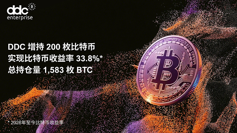 2026年1月22日纽约讯——全球亚洲食品平台及数字资产储备管理企业 DDC(NYSEAMERICAN: DDC,以下简称“DDC”或“公司”)今日宣布,作为公司既定BTC储备计划的一部分,已完成新一轮增持,新增购入 200 枚BTC。