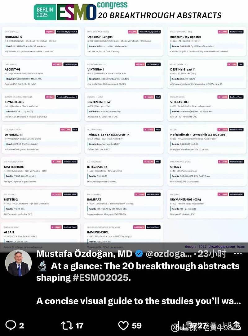 $康方生物(09926)$ 在这位土耳其博士披露的20个lba里面,所有披露HR的,只有H6是低于0.6,唯一一个低于0.6的。H6本来就是头对头对比替雷利珠加化疗(当前标准疗法之一)的一线治疗,如果真的是0.58,低于0.6,这个结果应该是相当好了。