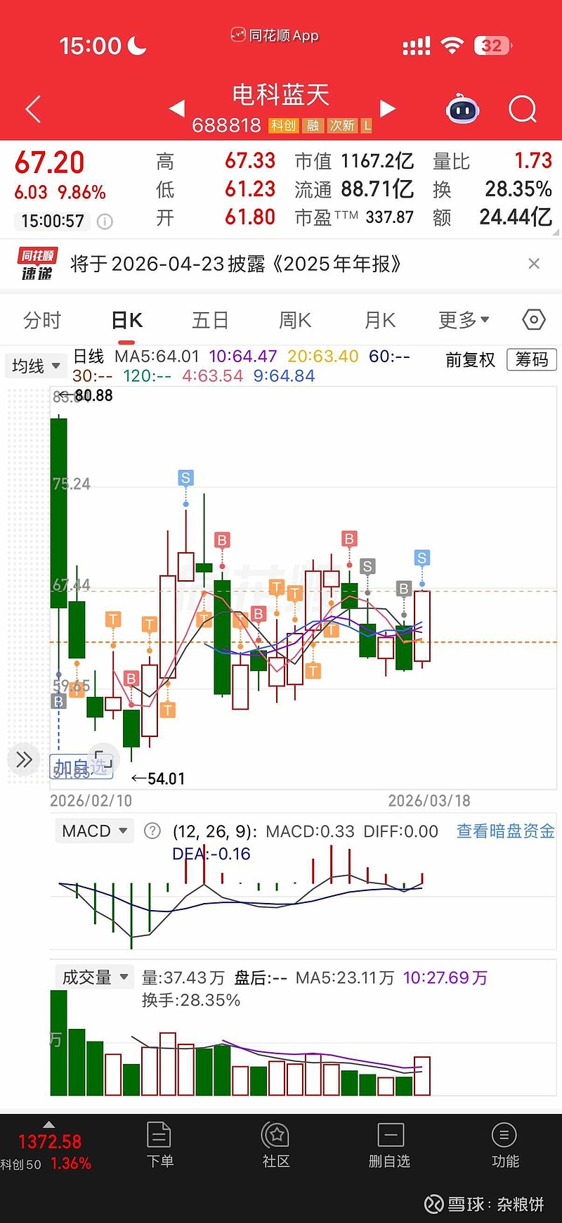 守了他很久,一早上冲起来就减了2成,有种踏空的感觉,算了留着明天做T吧