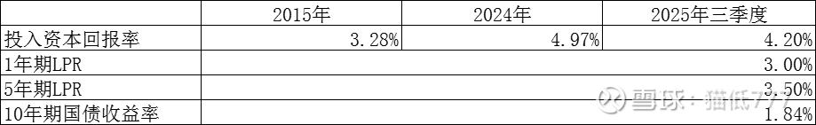 公司投入资本回报率2024年为4.97%、2025年3季度为4.20%,相较2015年有所提高,高于当前5年期贷款市场报价利率(LPR)水平。