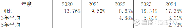 2020-2024年,公司营收年均增长2.73%,各年间增长波动大,变化范围为-18.34%至17.35%。