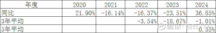 2020-2024年,公司净利润年均增长0.55%,各年同比变动大,波动范围为-23.51%至36.85%。